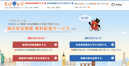 INFORMATION旅の情報 入国要件(ビザ・パスポート) 渡航に必要な査証(ビザ)やパスポートなどについての情報です。 詳細はこちら たびレジ 外務省による海外安全情報配信サービス「たびレジ」の登録代行を行っています。 詳細はこちら Webチェックイン・手荷物 各航空会社のサービスについての情報です。 国際線はこちら 国内線はこちら 未成年の単独(または片親のみ同行)の海外渡航について 未成年のお客様の渡航についての注意事項です。 詳細はこちら