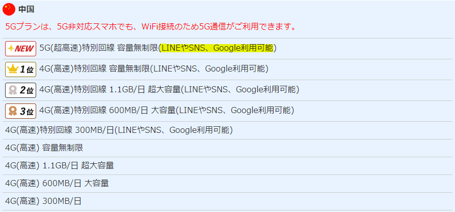 LINEやSNS、Google利用可能」と書かれているプランを選びましょう。